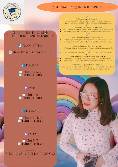 điện thoại Trung tâm dạy thêm Toán - Lý cô Hoài 📱?